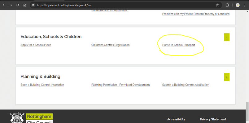 Once logged in to the Nottingham City Council website, look for the Education section.